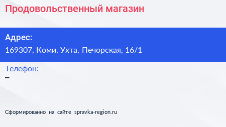 Продовольственный магазин по адресу 169307, Коми, Ухта, Печорская, 16/1 в дальнейшем Организация, размещена в следующих категориях: