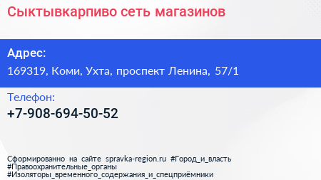 Сыктывкарпиво, сеть магазинов по адресу 169319, Коми, Ухта, проспект Ленина, 57/1 в дальнейшем Организация, размещена в следующих категориях: