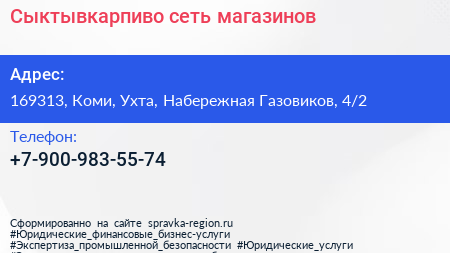 Сыктывкарпиво, сеть магазинов по адресу 169313, Коми, Ухта, Набережная Газовиков, 4/2 в дальнейшем Организация, размещена в следующих категориях: