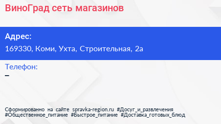 ВиноГрад, сеть магазинов по адресу 169330, Коми, Ухта, Строительная, 2а в дальнейшем Организация, размещена в следующих категориях: