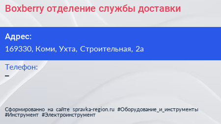 Boxberry, отделение службы доставки по адресу 169330, Коми, Ухта, Строительная, 2а в дальнейшем Организация, размещена в следующих категориях: