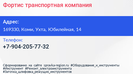 Фортис, транспортная компания по адресу 169330, Коми, Ухта, Юбилейная, 14 в дальнейшем Организация, размещена в следующих категориях: