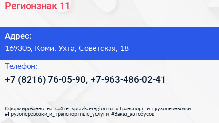 Регионзнак-11 по адресу 169305, Коми, Ухта, Советская, 18 в дальнейшем Организация, размещена в следующих категориях: