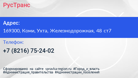 РусТранс по адресу 169300, Коми, Ухта, Железнодорожная, 48 ст7 в дальнейшем Организация, размещена в следующих категориях: