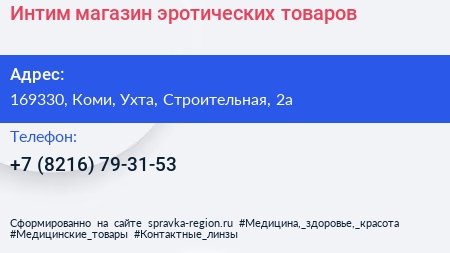 Интим, магазин эротических товаров по адресу 169330, Коми, Ухта, Строительная, 2а в дальнейшем Организация, размещена в следующих категориях: