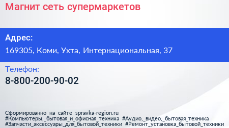 Магнит, сеть супермаркетов по адресу 169305, Коми, Ухта, Интернациональная, 37 в дальнейшем Организация, размещена в следующих категориях:
