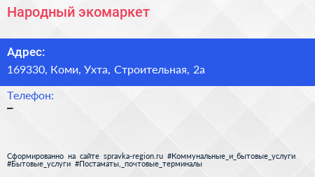 Народный, экомаркет по адресу 169330, Коми, Ухта, Строительная, 2а в дальнейшем Организация, размещена в следующих категориях: