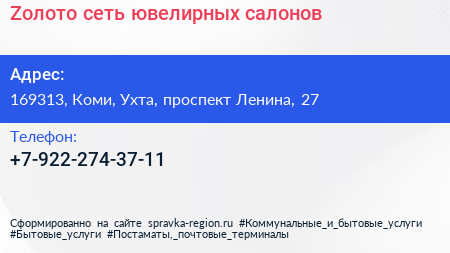 Zолото, сеть ювелирных салонов по адресу 169313, Коми, Ухта, проспект Ленина, 27 в дальнейшем Организация, размещена в следующих категориях: