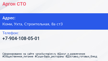 Аргон, СТО по адресу Коми, Ухта, Строительная, 8а ст3 в дальнейшем Организация, размещена в следующих категориях:
