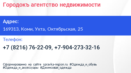 Городокъ, агентство недвижимости по адресу 169313, Коми, Ухта, Октябрьская, 25 в дальнейшем Организация, размещена в следующих категориях: