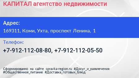 КАПИТАЛ, агентство недвижимости по адресу 169311, Коми, Ухта, проспект Ленина, 1 в дальнейшем Организация, размещена в следующих категориях:
