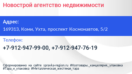 Новострой, агентство недвижимости по адресу 169313, Коми, Ухта, проспект Космонавтов, 5/2 в дальнейшем Организация, размещена в следующих категориях: