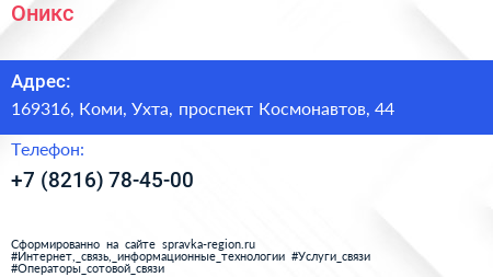 Оникс по адресу 169316, Коми, Ухта, проспект Космонавтов, 44 в дальнейшем Организация, размещена в следующих категориях:
