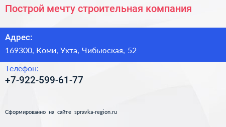 Построй мечту, строительная компания по адресу 169300, Коми, Ухта, Чибьюская, 52 в дальнейшем Организация, размещена в следующих категориях: