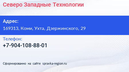 Северо-Западные Технологии по адресу 169313, Коми, Ухта, Дзержинского, 29 в дальнейшем Организация, размещена в следующих категориях: