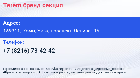 Terem, бренд-секция по адресу 169311, Коми, Ухта, проспект Ленина, 15 в дальнейшем Организация, размещена в следующих категориях: