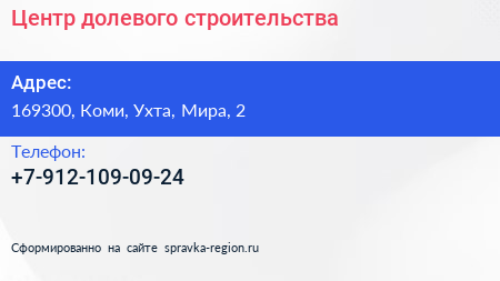 Центр долевого строительства по адресу 169300, Коми, Ухта, Мира, 2 в дальнейшем Организация, размещена в следующих категориях:
