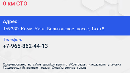 0 км, СТО по адресу 169330, Коми, Ухта, Бельгопское шоссе, 1а ст8 в дальнейшем Организация, размещена в следующих категориях: