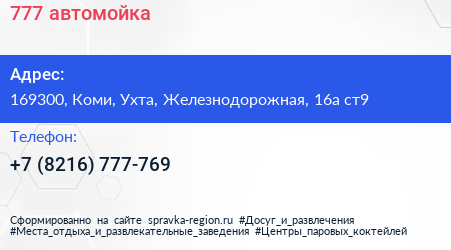 777, автомойка по адресу 169300, Коми, Ухта, Железнодорожная, 16а ст9 в дальнейшем Организация, размещена в следующих категориях: