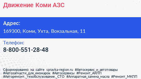 Движение-Коми, АЗС по адресу 169300, Коми, Ухта, Вокзальная, 11 в дальнейшем Организация, размещена в следующих категориях: