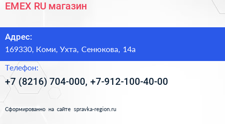 EMEX.RU, магазин по адресу 169330, Коми, Ухта, Сенюкова, 14а в дальнейшем Организация, размещена в следующих категориях: