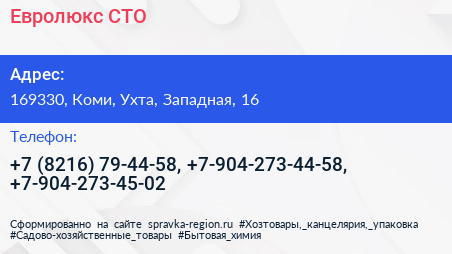 Евролюкс, СТО по адресу 169330, Коми, Ухта, Западная, 16 в дальнейшем Организация, размещена в следующих категориях: