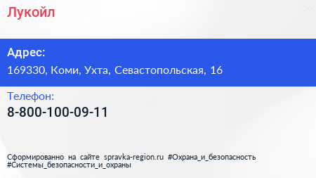 Лукойл по адресу 169330, Коми, Ухта, Севастопольская, 16 в дальнейшем Организация, размещена в следующих категориях: