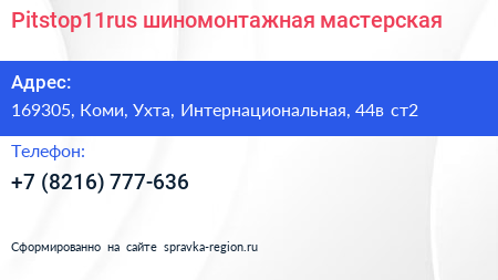 Pitstop11rus, шиномонтажная мастерская по адресу 169305, Коми, Ухта, Интернациональная, 44в ст2 в дальнейшем Организация, размещена в следующих категориях: