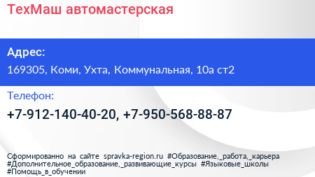 ТехМаш, автомастерская по адресу 169305, Коми, Ухта, Коммунальная, 10а ст2 в дальнейшем Организация, размещена в следующих категориях: