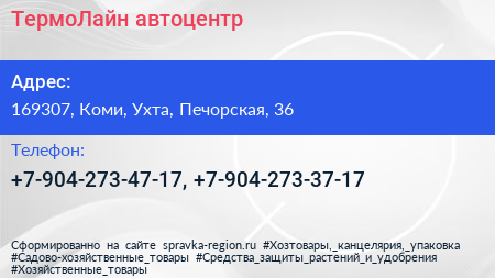 ТермоЛайн, автоцентр по адресу 169307, Коми, Ухта, Печорская, 36 в дальнейшем Организация, размещена в следующих категориях: