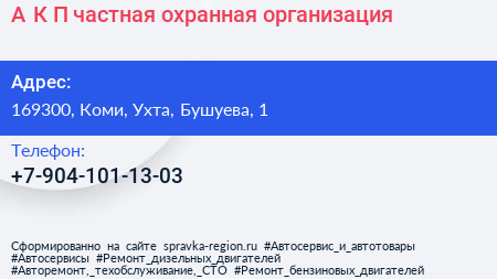 А.К.П., частная охранная организация по адресу 169300, Коми, Ухта, Бушуева, 1 в дальнейшем Организация, размещена в следующих категориях:
