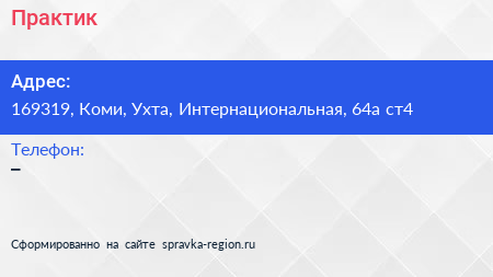 Практик по адресу 169319, Коми, Ухта, Интернациональная, 64а ст4 в дальнейшем Организация, размещена в следующих категориях: