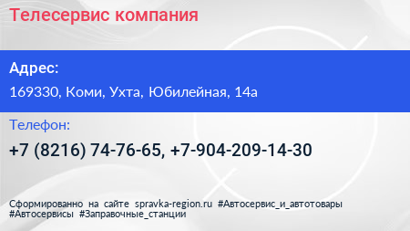 Телесервис, компания по адресу 169330, Коми, Ухта, Юбилейная, 14а в дальнейшем Организация, размещена в следующих категориях: