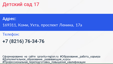 Детский сад №17 по адресу 169311, Коми, Ухта, проспект Ленина, 17а в дальнейшем Организация, размещена в следующих категориях:
