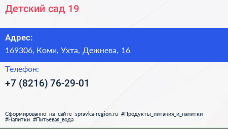 Детский сад №19 по адресу 169306, Коми, Ухта, Дежнева, 16 в дальнейшем Организация, размещена в следующих категориях: