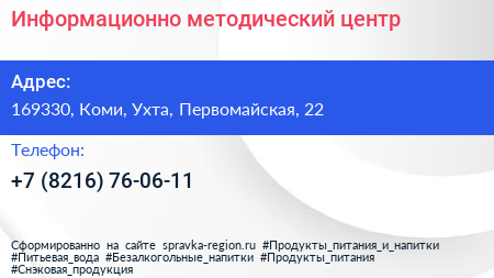 Информационно-методический центр по адресу 169330, Коми, Ухта, Первомайская, 22 в дальнейшем Организация, размещена в следующих категориях: