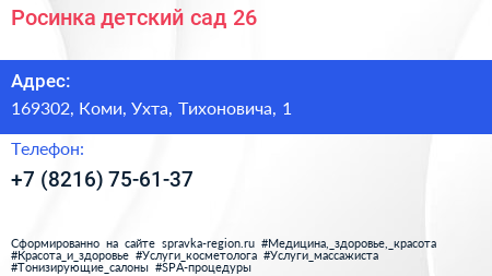 Росинка, детский сад №26 по адресу 169302, Коми, Ухта, Тихоновича, 1 в дальнейшем Организация, размещена в следующих категориях: