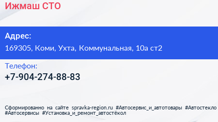 Ижмаш, СТО по адресу 169305, Коми, Ухта, Коммунальная, 10а ст2 в дальнейшем Организация, размещена в следующих категориях: