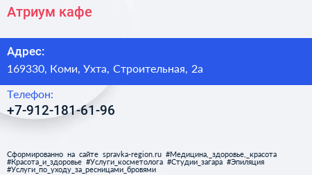 Атриум, кафе по адресу 169330, Коми, Ухта, Строительная, 2а в дальнейшем Организация, размещена в следующих категориях: