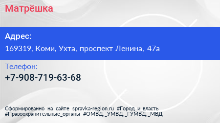 Матрёшка по адресу 169319, Коми, Ухта, проспект Ленина, 47а в дальнейшем Организация, размещена в следующих категориях: