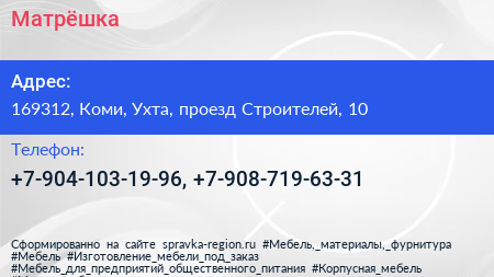 Матрёшка по адресу 169312, Коми, Ухта, проезд Строителей, 10 в дальнейшем Организация, размещена в следующих категориях: