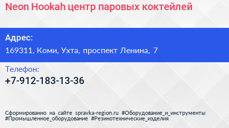 Neon Hookah, центр паровых коктейлей по адресу 169311, Коми, Ухта, проспект Ленина, 7 в дальнейшем Организация, размещена в следующих категориях: