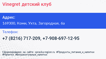 Vinegret, детский клуб по адресу 169300, Коми, Ухта, Загородная, 6а в дальнейшем Организация, размещена в следующих категориях: