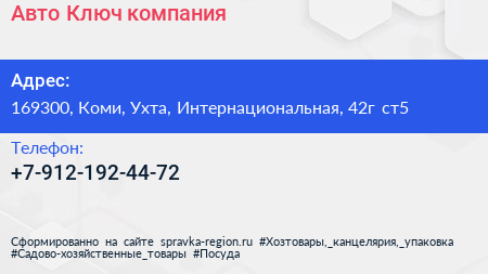 Авто-Ключ, компания по адресу 169300, Коми, Ухта, Интернациональная, 42г ст5 в дальнейшем Организация, размещена в следующих категориях:
