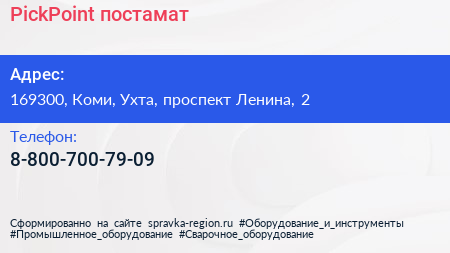 PickPoint, постамат по адресу 169300, Коми, Ухта, проспект Ленина, 2 в дальнейшем Организация, размещена в следующих категориях: