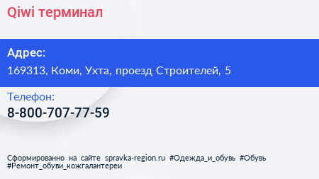 Qiwi, терминал по адресу 169313, Коми, Ухта, проезд Строителей, 5 в дальнейшем Организация, размещена в следующих категориях: