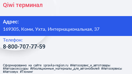 Qiwi, терминал по адресу 169305, Коми, Ухта, Интернациональная, 37 в дальнейшем Организация, размещена в следующих категориях: