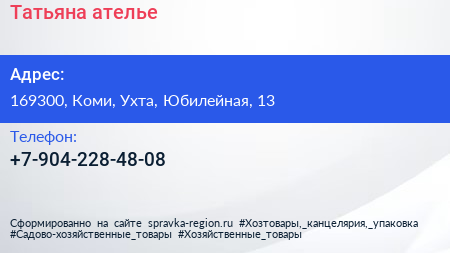 Татьяна, ателье по адресу 169300, Коми, Ухта, Юбилейная, 13 в дальнейшем Организация, размещена в следующих категориях: