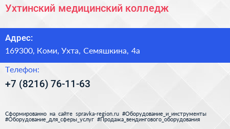 Ухтинский медицинский колледж по адресу 169300, Коми, Ухта, Семяшкина, 4а в дальнейшем Организация, размещена в следующих категориях: