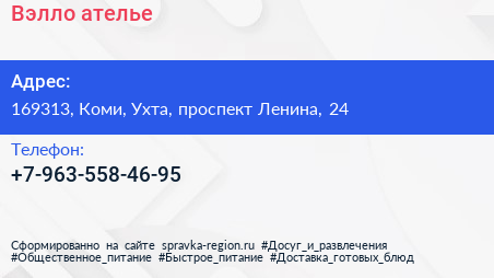 Вэлло, ателье по адресу 169313, Коми, Ухта, проспект Ленина, 24 в дальнейшем Организация, размещена в следующих категориях: